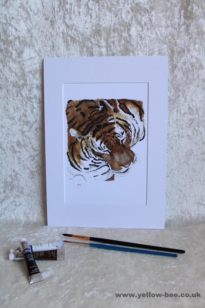 Professionally printed, mounted portrait print from an original watercolour of a TIGER by Yellow Bee